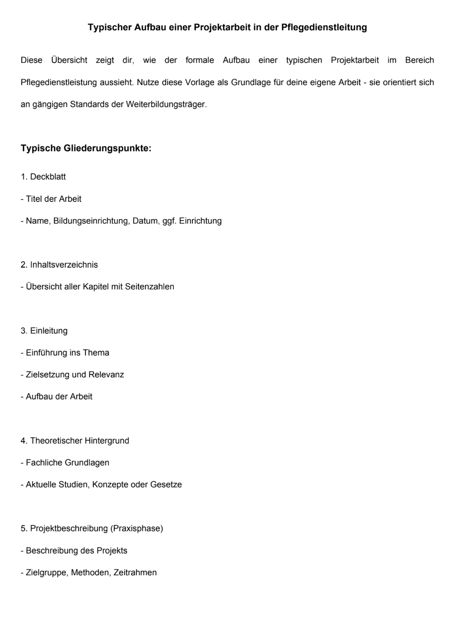 3. Wie ist der typische Aufbau einer Projektarbeit im Pflegebereich?
